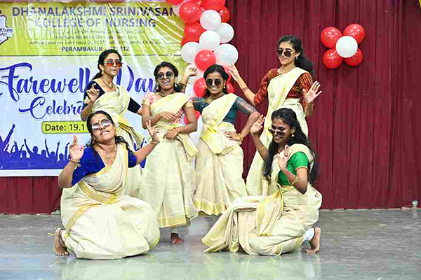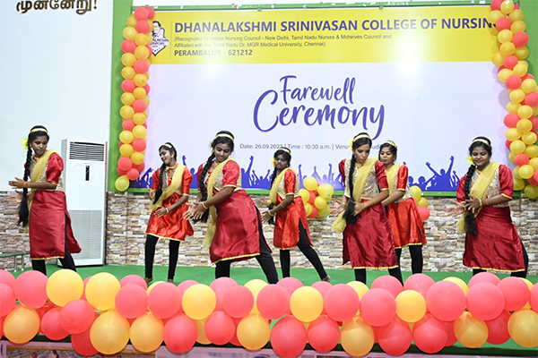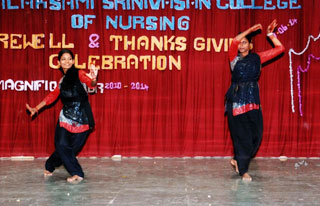 Momentos were given to the students by our chairman. The outgoing students shared their experiences of their college days. Thanks giving was given by the outgoing students and students presented the momento to the staff & the Management. The cultural were given by the juniors. Vote of thanks was given by Mrs.Lakshmi Devi,M.Sc (N), Lecturer, Dhanalakshmi Srinivasan College of Nursing.