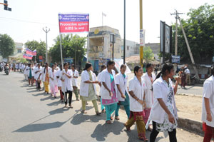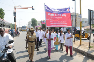 Dhanalakshmi srinivasan college of nursing organized rally on 01.12.2012 for world AIDS day with the theme on GETTING TO ZERO along with Dhanalakshmi Srinivasan Medical college and Hospital and Srinivasan college of nursing, Christian college of nursing and Aids district officer.Our chairman sri .A. Srinivasan and our Secretary Neelraj Commenced the rally. About 800 students were participated and created awareness.